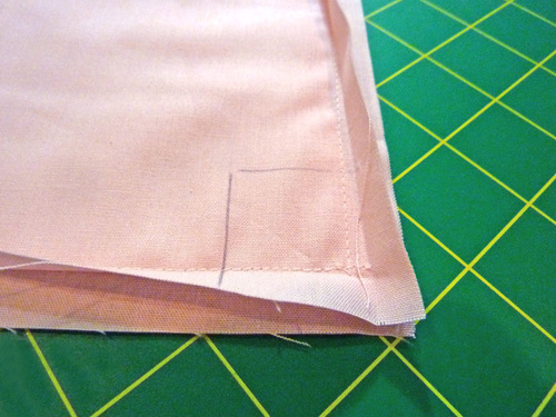 - Turn the pocket right side out. Using a long, blunt end tool push out the corners so they are nice and sharp. A long knitting needle, chopstick or point turner works well for this.