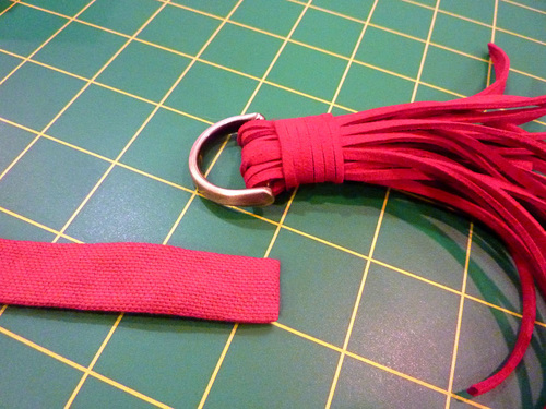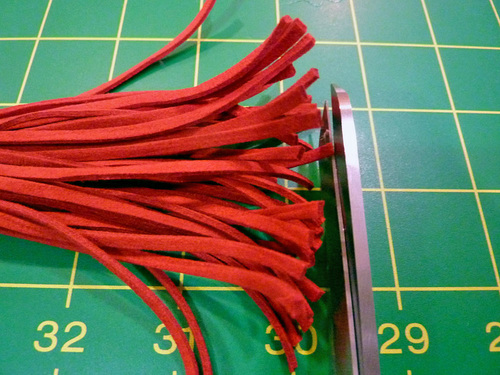 - 8-10 yards of thin (⅛”) suede or microfiber lacing for the tassel; we used Tandy Leather’s Eco-Soft Lace (a microfiber) in Red