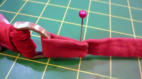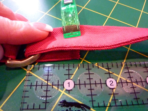 - Wrap the finished end of the strap through the D-Ring, bringing it back on itself about 1”. Pin in place.