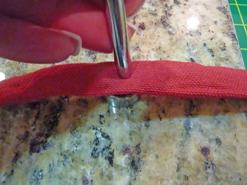 - Turn the strap right side out through the open end. As above, use a long, blunt end tool push out the corners so they are nice and sharp. Press flat. Our strap finished at approximately ⅝”.