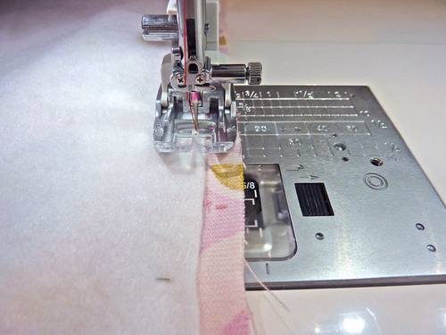 - Using a ½” seam allowance, stitch along both sides and across the bottom, pivoting at the corners. You are stitching along, but not directly on, the fusible fleece.