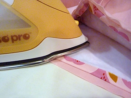 - Press open the seam allowance all around to ensure a nice, sharp seamed edge.