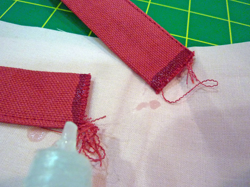 - Finish the raw ends in the same manner as the raw ends of the strap tabs, with the seam sealant and then trimmed straight and clean.
