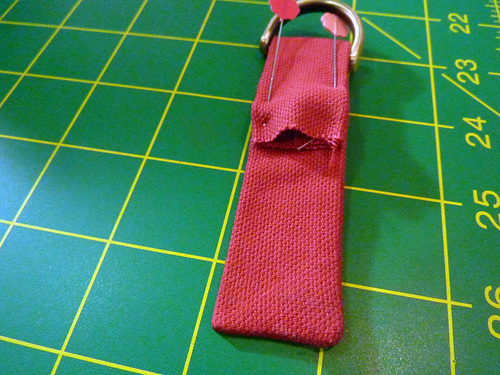 - Turn the strap tabs right side out through their open ends. As above, use a long, blunt tool push out the corners so they are nice and sharp. Press flat.