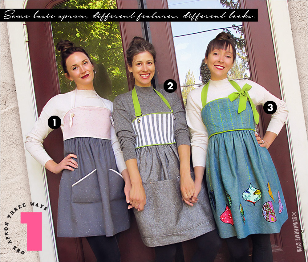 That is what’s SO cool about sewing: you get to choose your own direction. It’s also what’s cool about this trio of aprons, they are all a bit different, including different options for the neck loop. The knots-through-buttonholes option is a great one for newer sewists, and is one of the fave features on our #1 popular Sweetheart Apron … so we love bringing it into designs now and then.