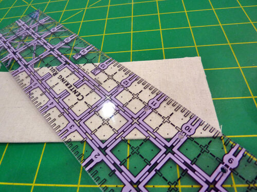 - With a see-through ruler and rotary cutter, trim one end of each folded tie at a 45˚ angle.
