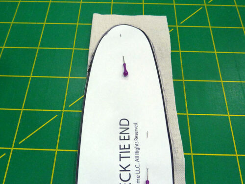 - Using the Tie End Template, align one side of the template along the folded edge with the curved end of the template ½” in from the end of the folded strip.