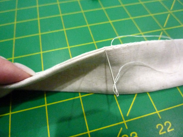 - Hand stitch the folded edge of the bodice all the way across with a neat ladder stitch.