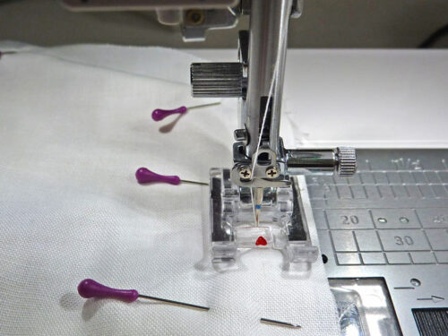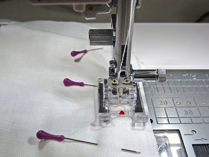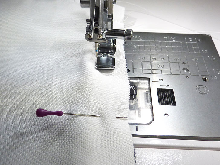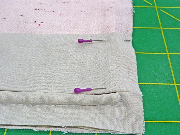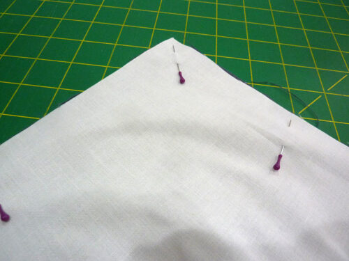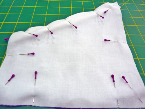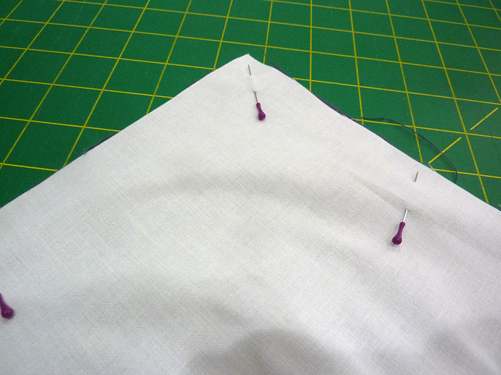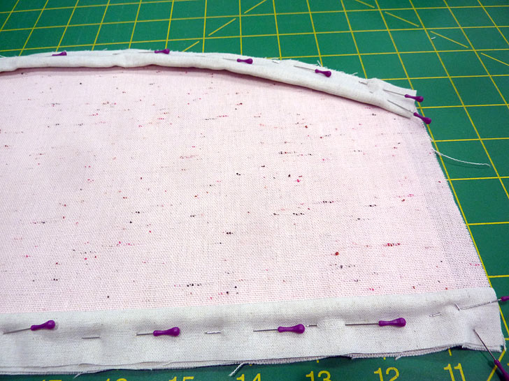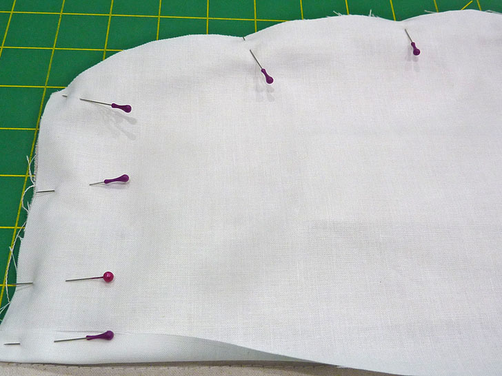- Pin in place along the two sides and across the top curved edge. The bottom remains open.