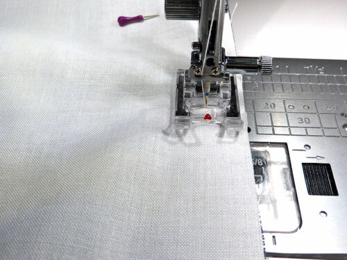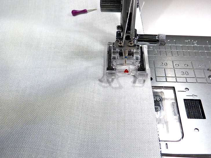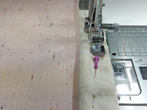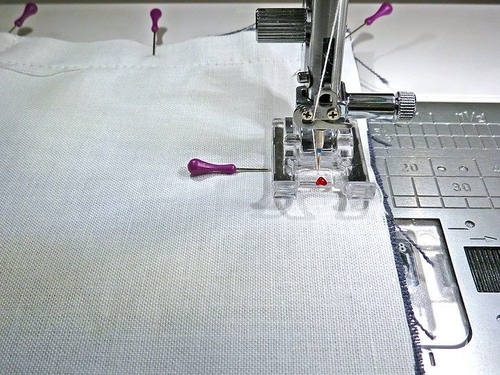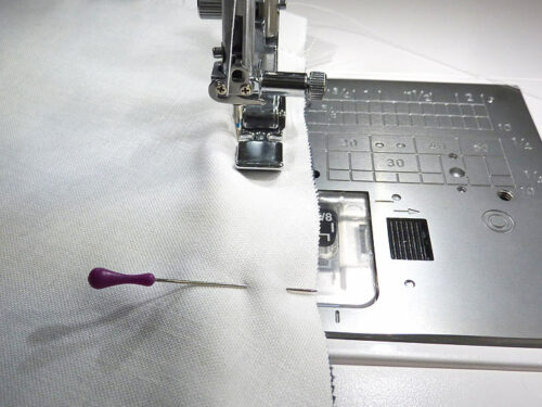 - Re-thread if necessary so your threads in the top and bobbin match the exterior and lining fabrics. Set for a standard stitch length.