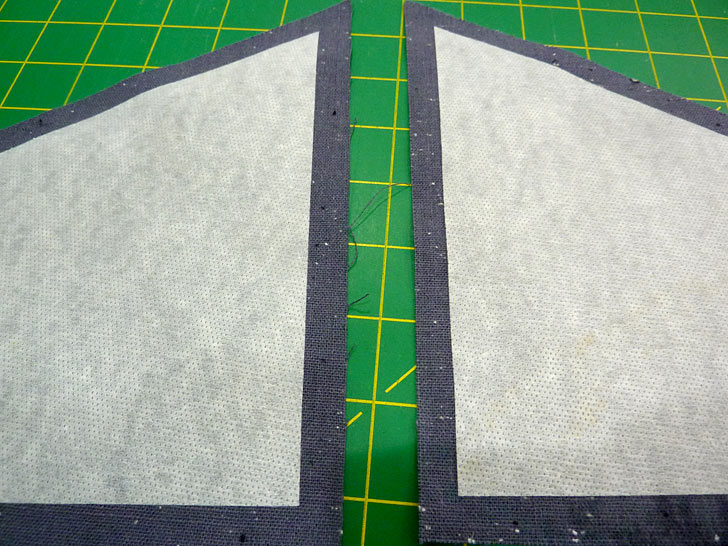 - From the lightweight non-woven fusible, cut TWO, using the pocket pattern but cutting along the dotted stitch line rather than the solid outside line.