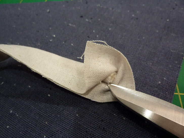- Turn right side out, gently rounding out the curves at each end. As above, a long knitting needle, chopstick or point turner works well for this.