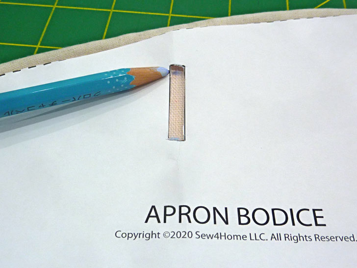 NOTE: With the linen we selected for the ties, no interfacing was required. If you choose a lighter weight substrate, such as a quilting cotton, you may want to purchase additional interfacing to allow you to interface the neck loop and bodice ties. - Scraps or ½ yard of 20”+ lightweight crisp non-woven interfacing for the pockets; we used 20” Pellon Shir-Tailor