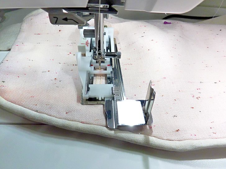 - Attach a Zipper foot, which will allow you to get as close as possible along the piping cord, although you can also use a standard presser foot. We chose to use the Satin Stitch foot.