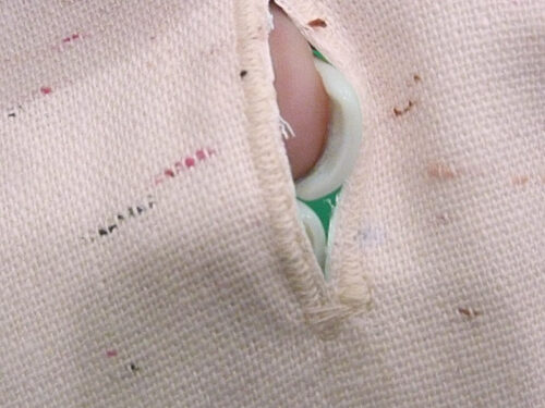 - Find the original bodice paper pattern. There are marks on this pattern for the two buttonholes. Cut out these marks so there are two little windows in the pattern.