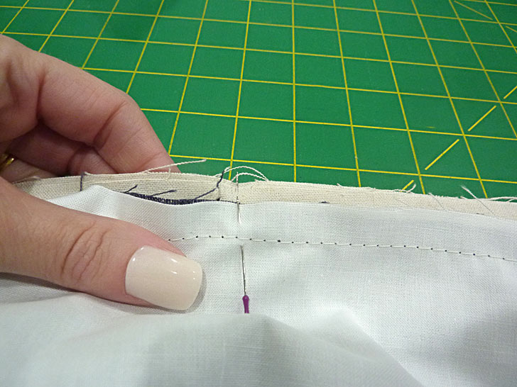 - If necessary, realign the top raw edges of both the skirt panel and the lining and pin the layers together across the top.