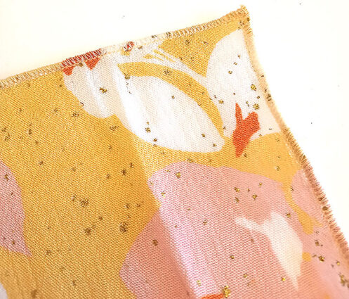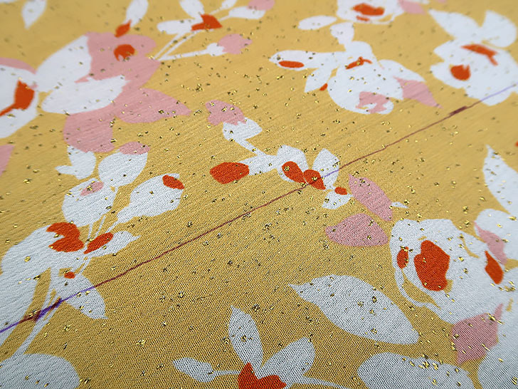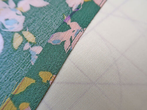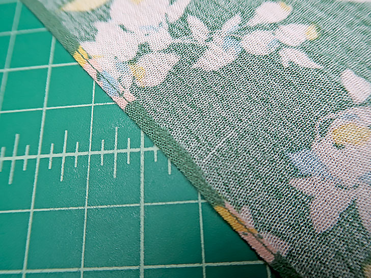 At its most basic, a scarf starts as a single layer of a lightweight substrate such as rayon, batiste, chiffon or gauze. For our samples, we chose two gorgeous rayon crepe prints. Yardage prices can be on the high side, but you don’t need much. And, be sure to shop the clearance section. That’s were we found bolt ends in a wide variety of colors and patterns at just a little over $5.00 a yard!