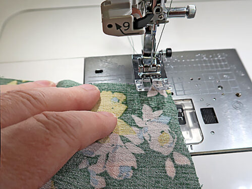 - A third option is to use a small folded scrap of fabric as a starter piece for your seam. It’s like giving your seam a running start onto the narrow edge. Simply butt the starter piece right up against the edge of the fabric.