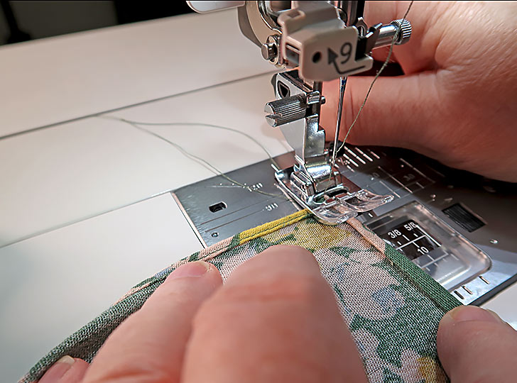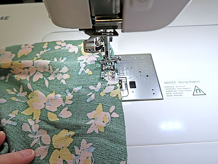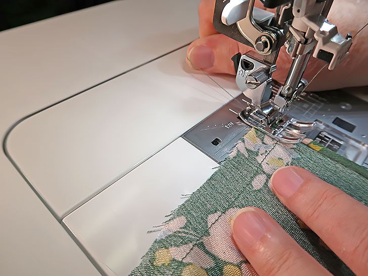 - Return to the machine to finish the ends in the same manner as you did the long sides. Bear in mind that when stitching these ends, you are sewing cross-grain, so the fabric will want to stretch. Go slowly and carefully.