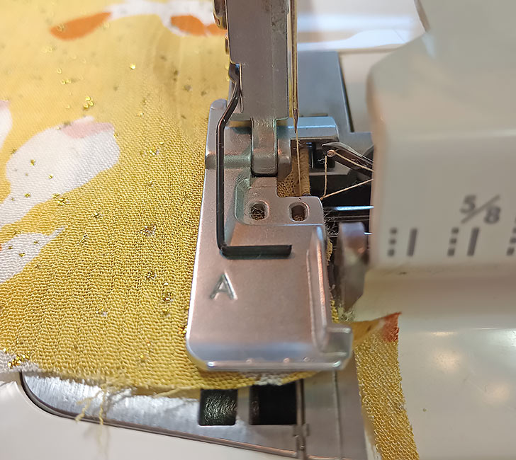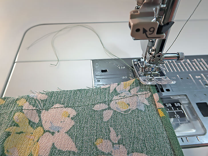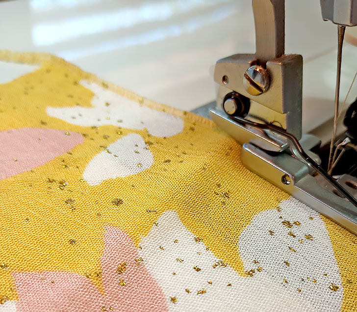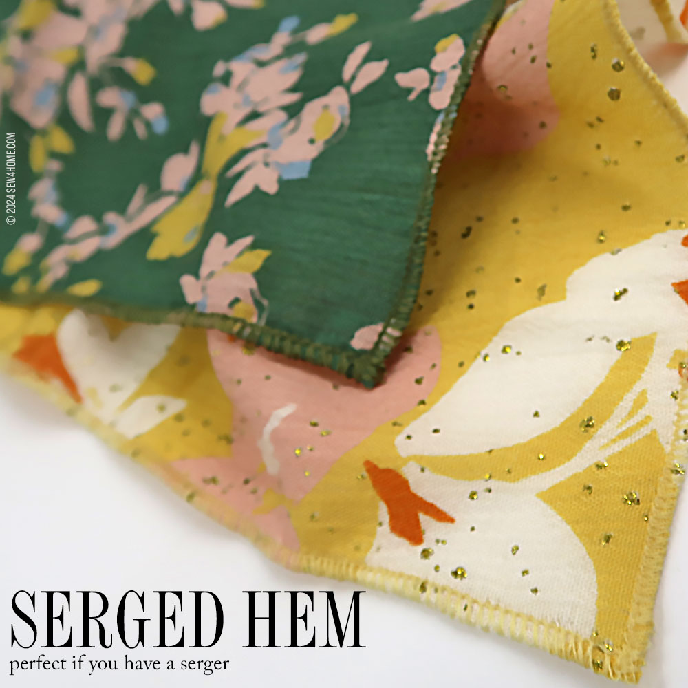 Finally, if you have a serger living in your sewing space, it can provide another great option for finishing the edge of lightweight fabrics: a 2-thread or 3-thread rolled hem. You’ll set up your machine with one needle, and with thread in both loopers. The stitch length is shortened and the lower looper tension is tightened. The fabric is rolled around the serger’s pin and encased in thread. You’ll have a beautiful hem in minutes.