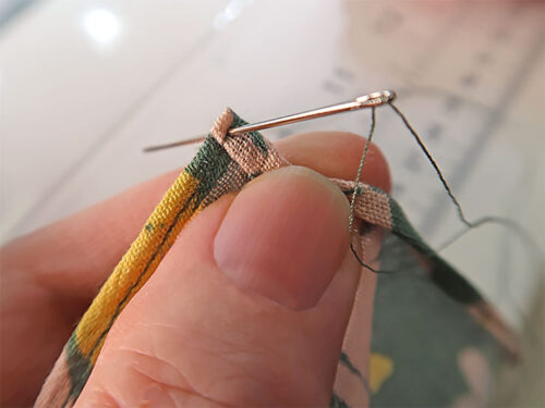 - Another option for starting at the edge or corner of a narrow hem is a dressmaker’s technique using a long needle and thread.