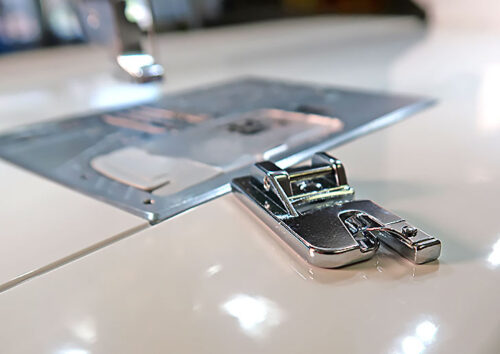 - But what about that 2” at the beginning? Simply pop off the Rolled Hem Foot and replace it with the standard foot.