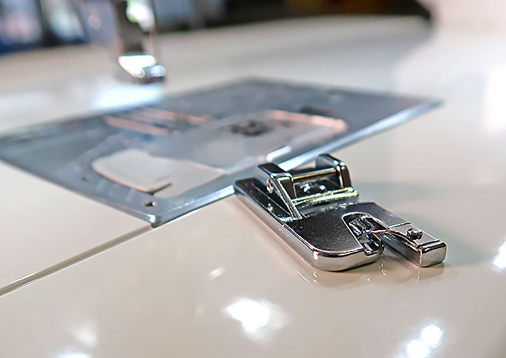 - We are still using a straight stitching needle plate with a Universal #19 needle and 60-weight all purpose thread in the top and bobbin. Do try to get your thread as close a match as possible to your fabric for the most invisible finish.