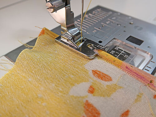 - Set up for a ½” seam allowance. This stitch will facilitate the fold that is coming and stabilize the edge of our sheer fabric.