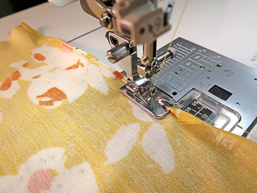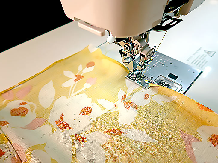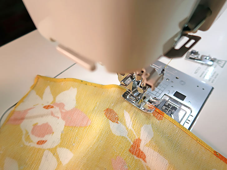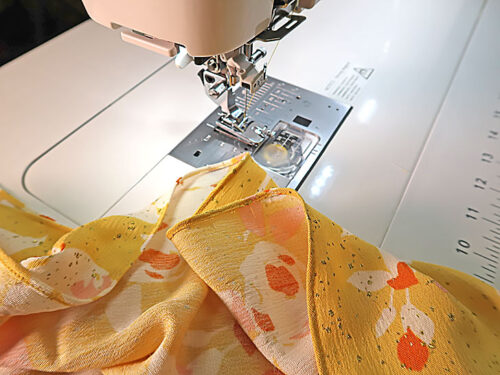 We turned to our Janome studio machines to bring you three ways to hem a traditional square and a long rectangle. All three options are excellent for sheer fabrics. You can learn them to make a stack of scarves, then use the techniques down the road for fancy dresses, elegant table linens, and more.