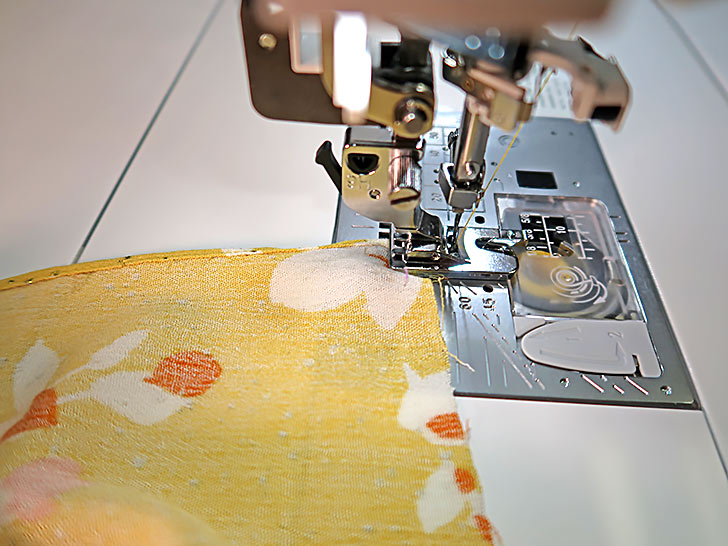 - Return to the top of the hem, switch to standard presser foot and finish as you did above with the side hems.