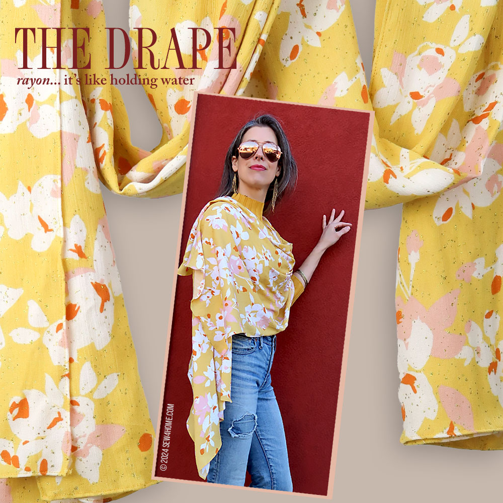 NOTE: Depending on the width of your fabric and the chosen width of your scarf, you could create TWO scarves from this yardage. - For the smaller square scarf: ¾ – 1 yard of 44”+ wide lightweight fabric, such as rayon, voile or batiste; we used a 49” rayon crepe