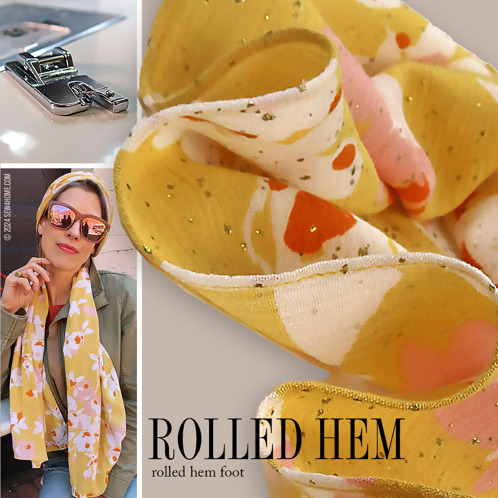 - The Rolled Hem Foot is at its very best when hemming long, long, long sides, which is why owe chose it to hem our long, rectangular scarf. We had nearly 73” to finish and it was the perfect foot for the job.