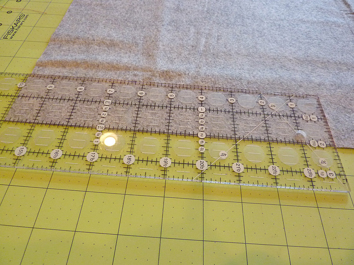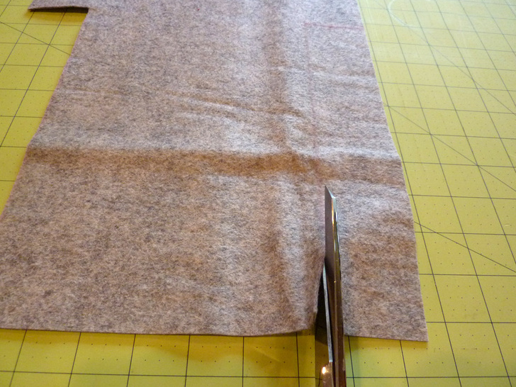 ONE 1¾” x 36″ strip for the strap - Lay the 11″ x 32″ felt rectangle flat on your work surface, orienting it as 11″ wide x 32″ high.
