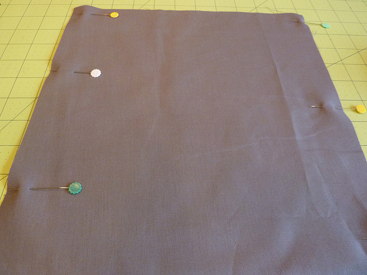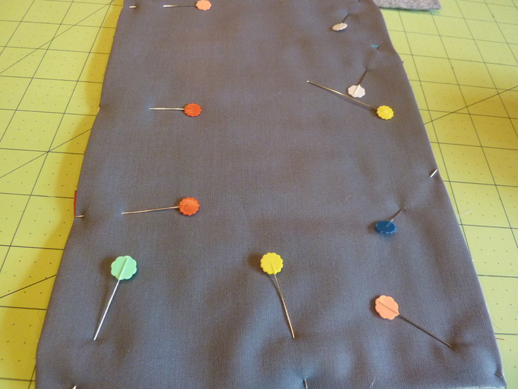- Find the 11″ x 23″ lining rectangle. Fold it in half, right sides together, so it is now 11″ x 11½”. Pin along both sides.
