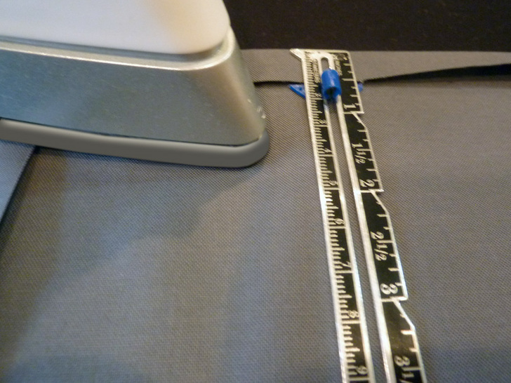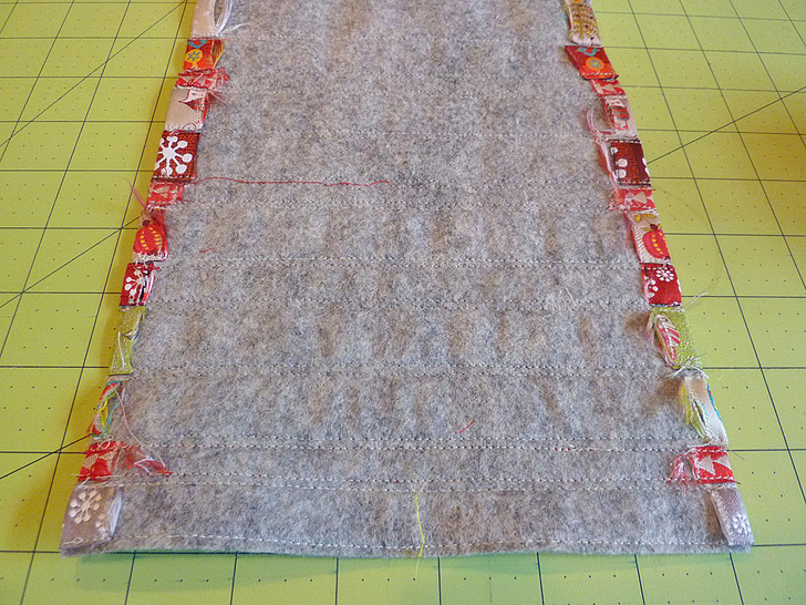 - Topstitch the ribbons in place along each long side of each ribbon. Again, we started at the bottom…