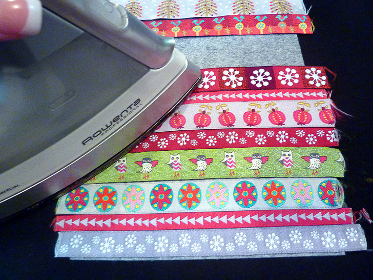 - Repeat these steps until all the ribbons are fused in place. For the best look, the ribbons should be butted against one another, in order words, no felt should be showing between the ribbons.