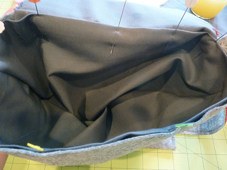 - Place the sewn bag on your work surface with the flap open and flat – so the flap lining is showing.