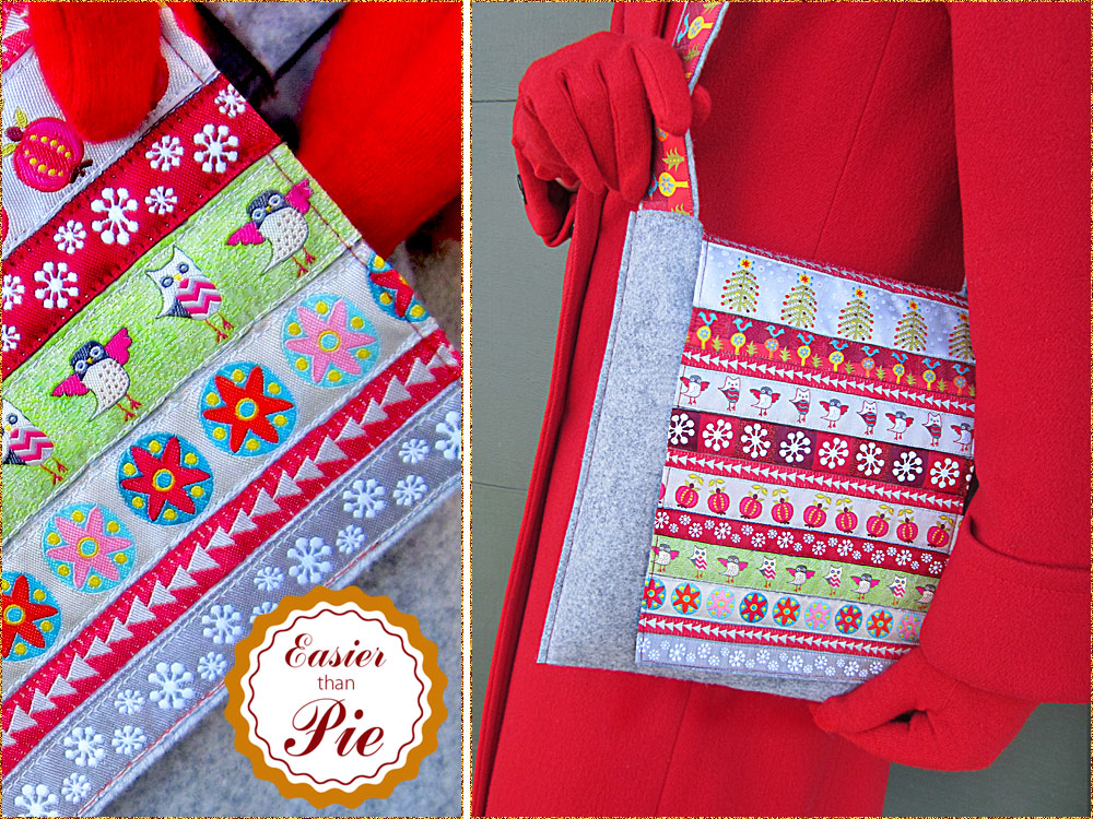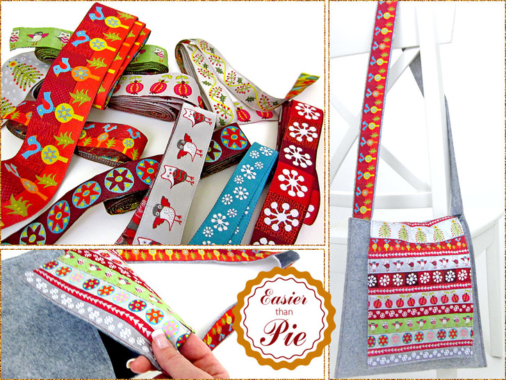 If you’re brand new to sewing, you might think a shoulder bag is too advanced a project to tackle. Nope! With some clever cutting and careful stitching, this ribbon-accented bag is super cute and super easy. There are no complicated corners or closures. And, the main body of the bag is a heavy wool felt, one of the most forgiving fabrics for new sewers.