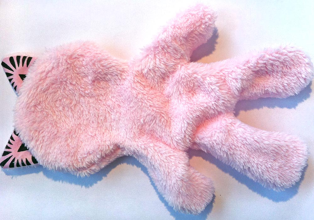 - Gently tear away paper and turn the ears right side out. Finger press to flatten (remember… do not iron the fleece).