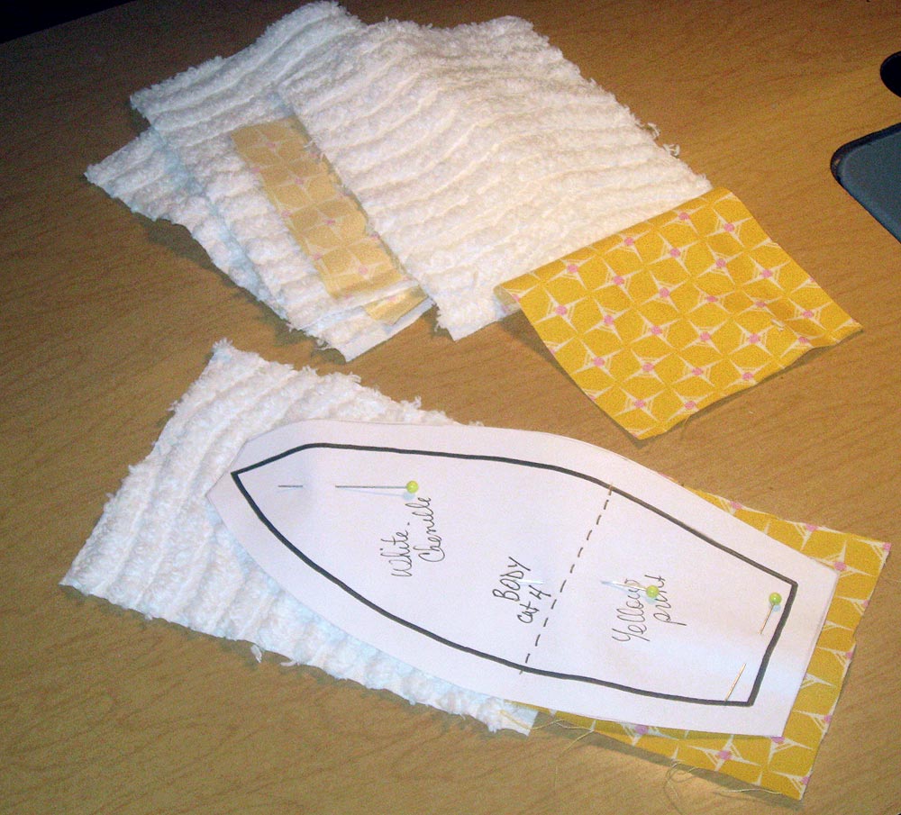 - Collect the four rectangles of chenille and the four squares of cotton and match them up into four sets of two – one chenille and one cotton.