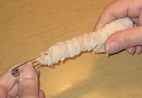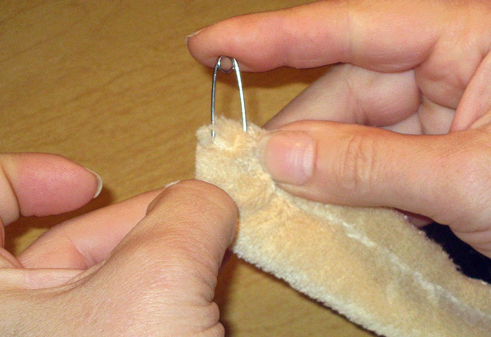 - Clip a large safety pin to one end, feed it back in on itself, and pull the pin through the other end to turn the tube right side out.