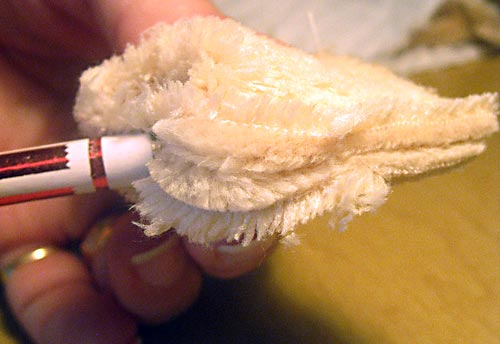 - Turn the hands and feet right sides out. A pencil with an eraser is helpful for turning such small pieces.