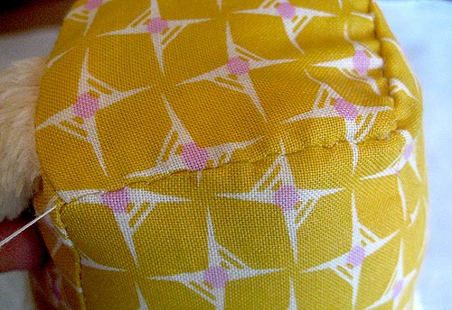 - Hand stitch the remaining half of the base closed with a small slip/ladder stitch.
