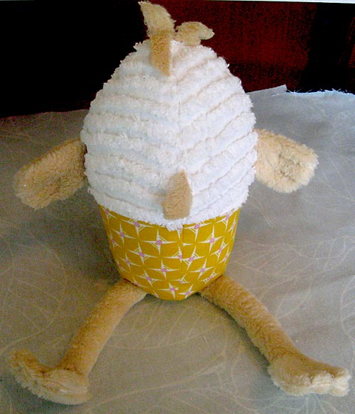- Turn Eggy right side out and pull out his top knot feathers, hands, and legs.