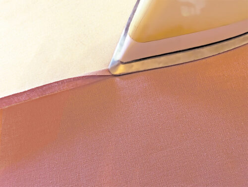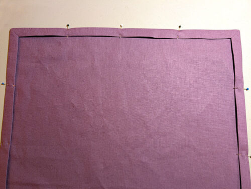 - Press an even double turn hem along each raw side edge. To do this, fold back the raw edge ½” and press well to set a crease.