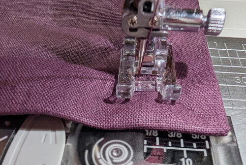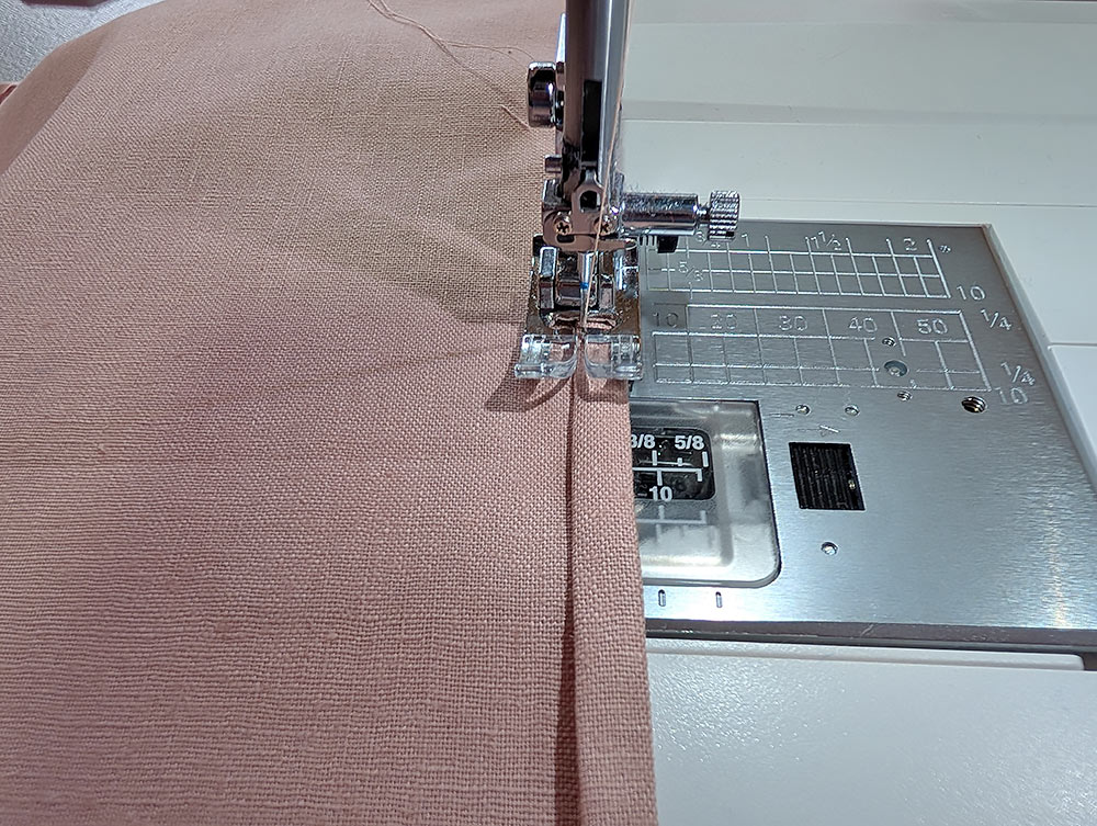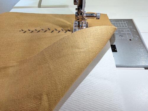 - Edgestitch the hem, starting the stitching in the middle of one side.