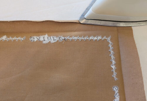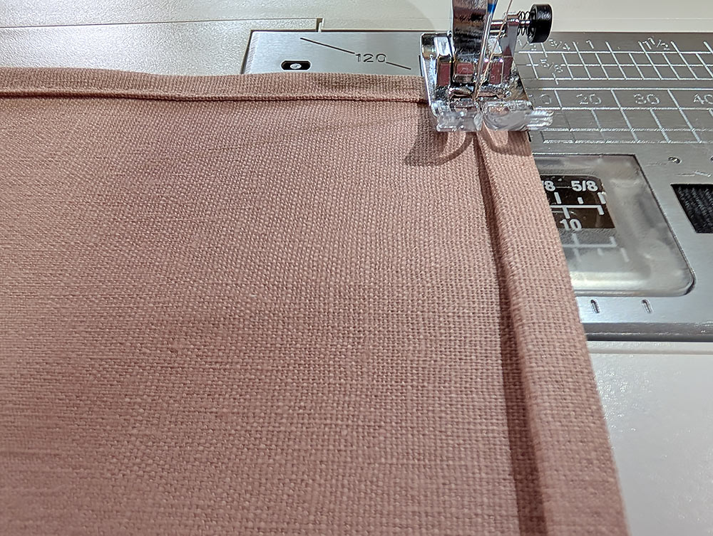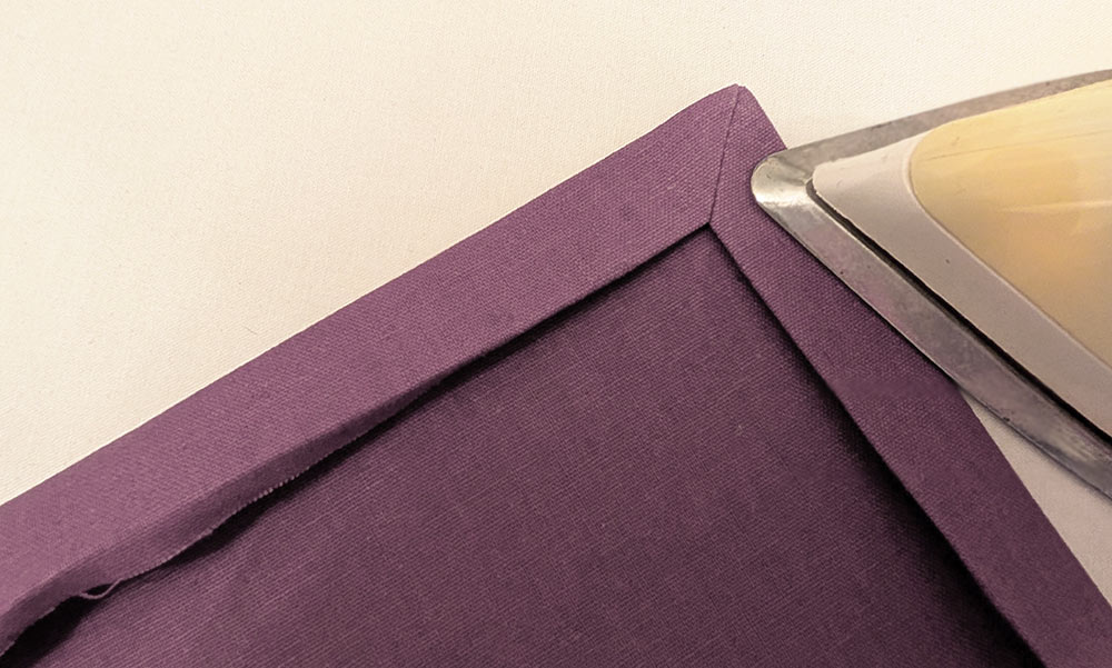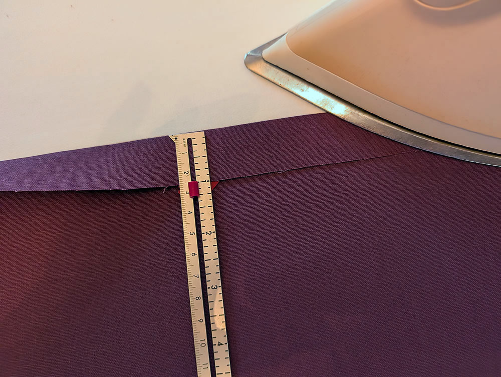 - Fold back the raw edge 1″ along each side, pressing well to set a visible crease line.