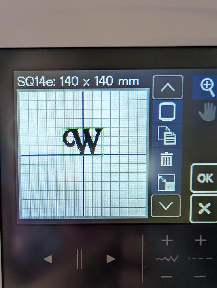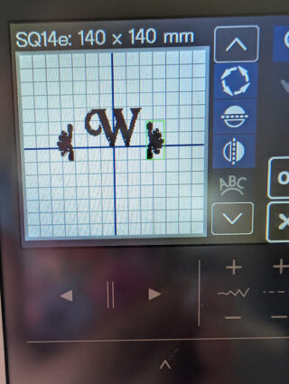 - Using the powerful on-screen editing tools on the MC1000, we duplicated the accent stitch, rotating and mirroring the design in order to place an accent on either side of letter.