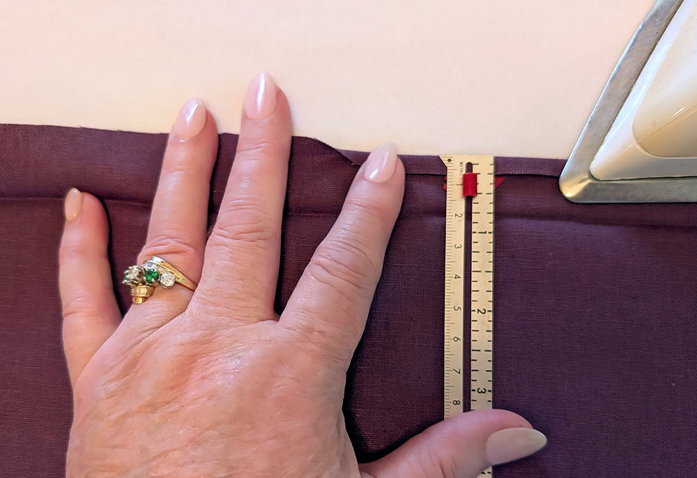 - When folded, you will be able to see your original 1” crease line. Position a ruler (we used our seam gauge) so it