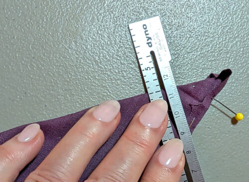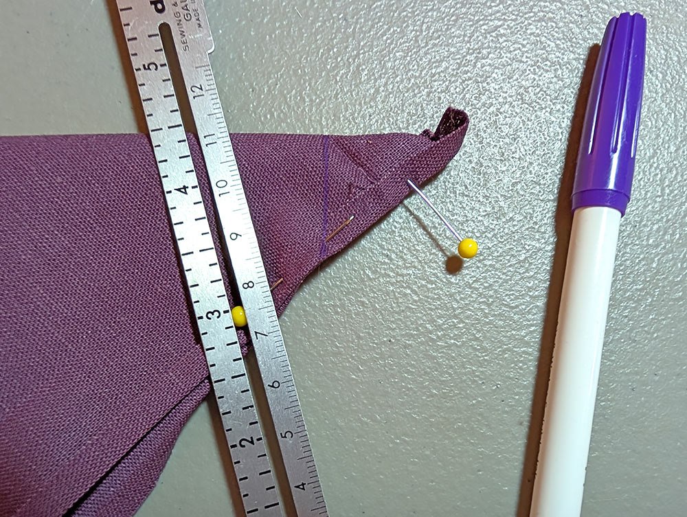 - Fold, pin, and mark each of remaining three corners in the same manner.